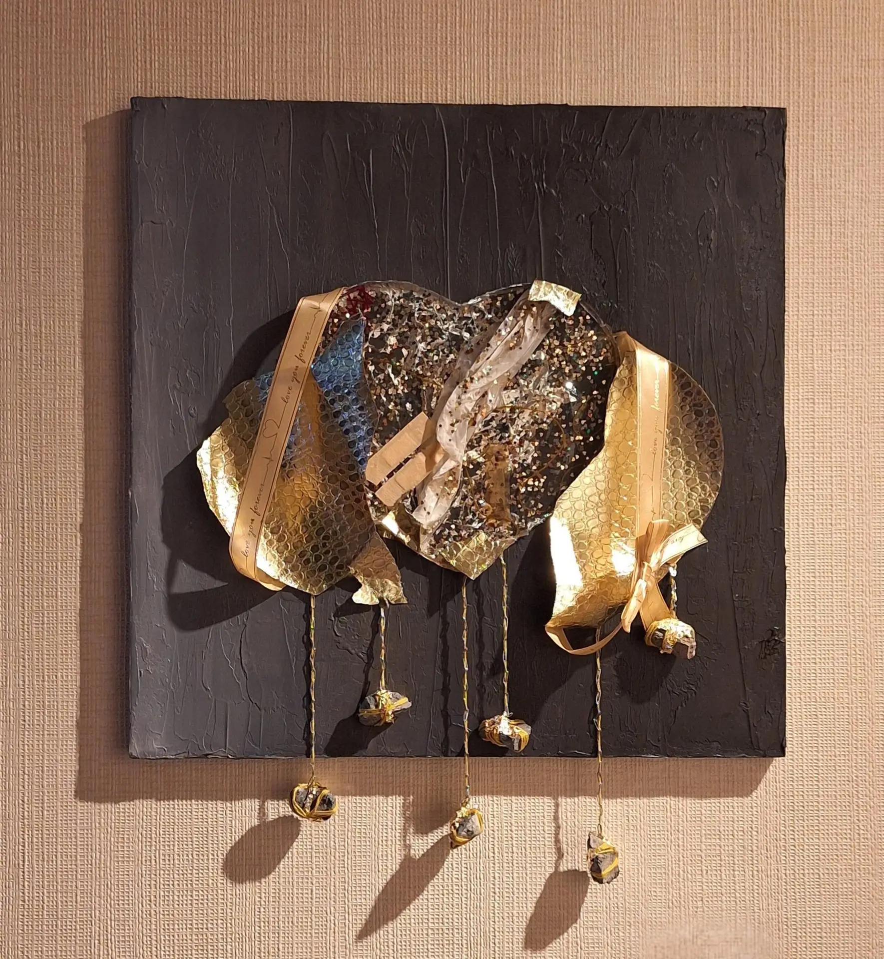 Inspirada en Salmos 34:18, esta obra refleja el dolor del corazón roto y la esperanza de sanidad divina. Un corazón fragmentado, trabajado con texturas y tonos dorados, simboliza la fragilidad humana y el proceso de ruptura a lo largo de la vida. A pesar de las cicatrices y las piezas sueltas, se mantiene como un regalo, apuntando a la promesa de restauración en Dios.